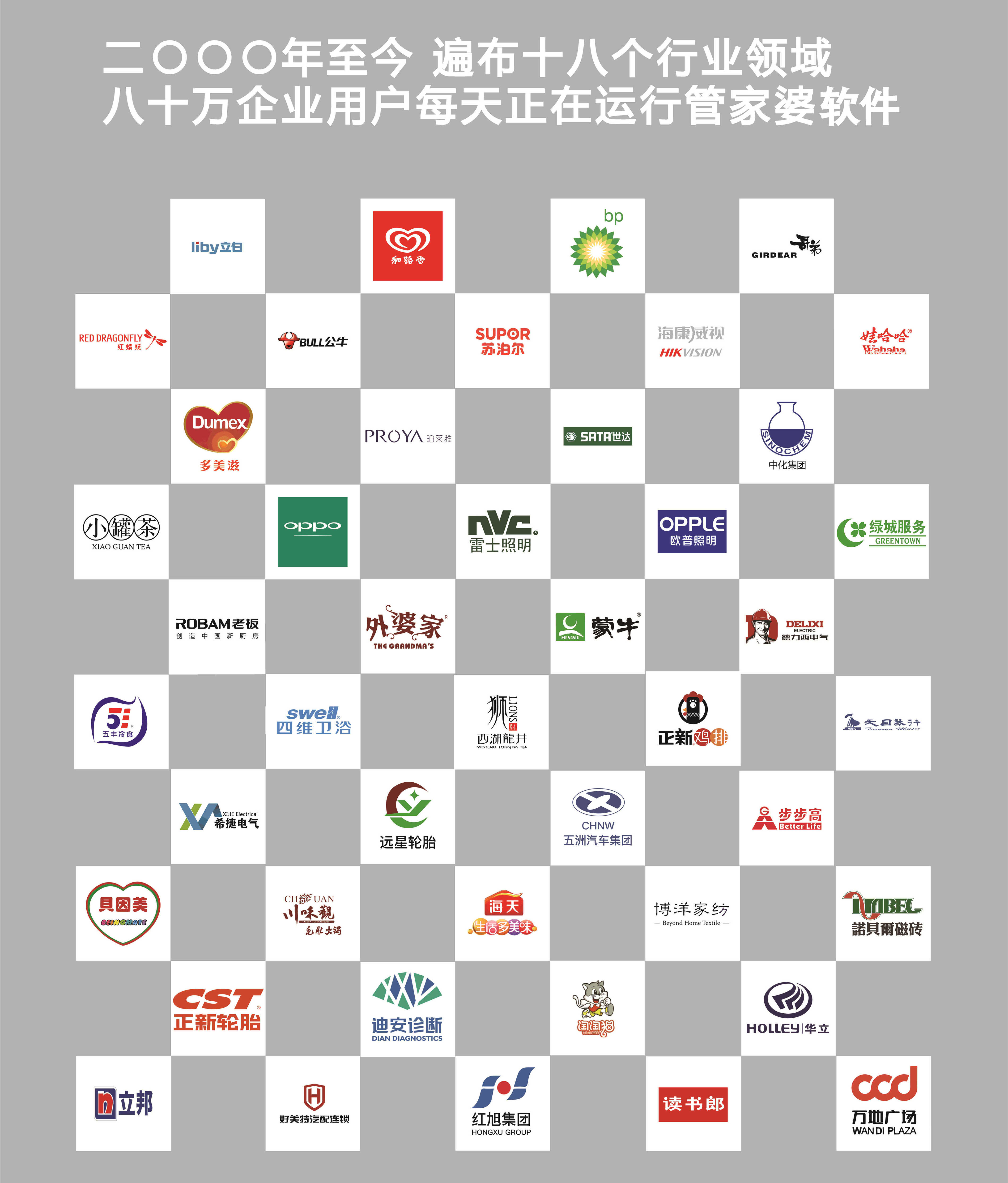 温州华邦已成功服务了海康威视、公牛电器、外婆家餐饮、贝因美、苏泊尔、老板电器、五丰冷食、绿城物业、娃哈哈、四维卫浴、雷士照明、淘淘猫、华之毅时尚集团等几十个知名品牌和上市公司。在团队的努力下,温州华邦荣获首批全国管家婆授权服务中心、5S体验中心、最佳合作奖、突出贡献奖、最佳绩效奖,长期合作伙伴等几十个奖项。