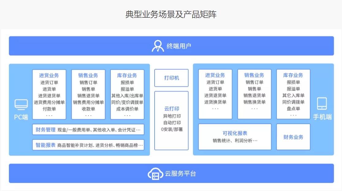 采用云服务技术,为用户提供进销存业务财务一体的企业资源管理平台,对关键业务数据进行统计分析